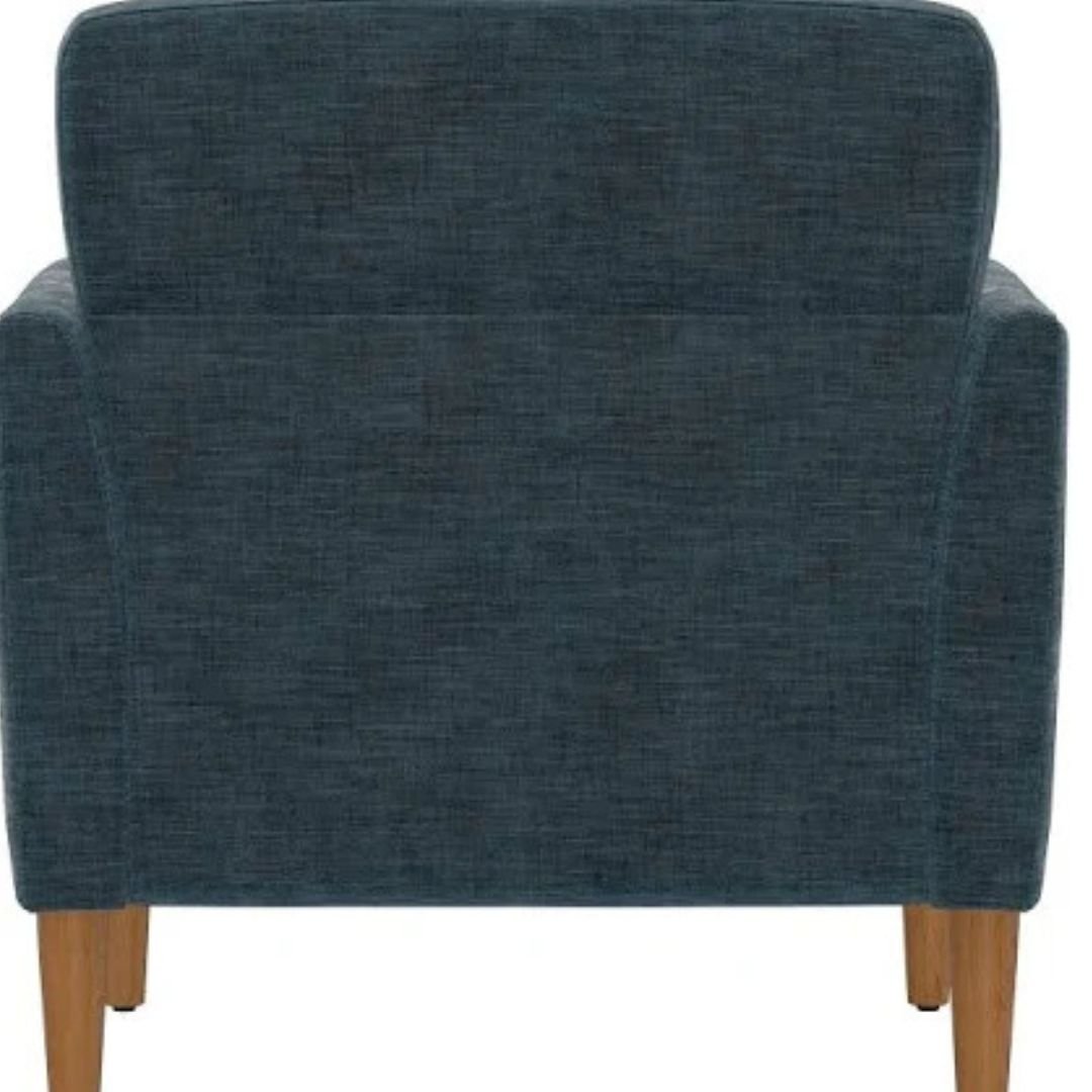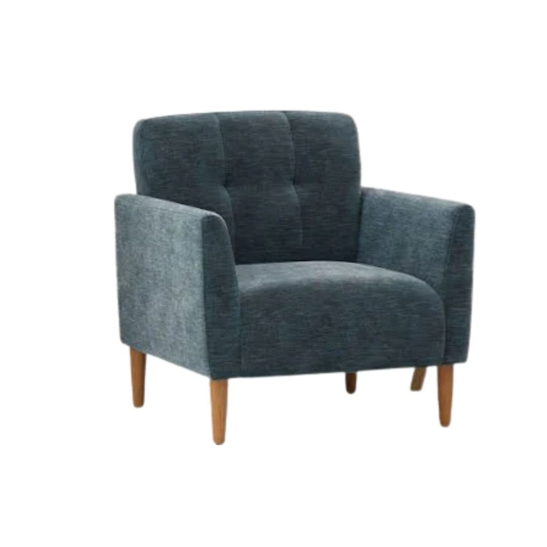This chair features a beautifully upholstered fabric finish paired with a supportive backrest and gently curved arms. The subtle tufting adds a touch of sophistication, making it both a functional and stylish piece. The generously padded seat and back are filled with high-density foam, ensuring long-lasting comfort whether you’re reading, relaxing, or hosting guests.
